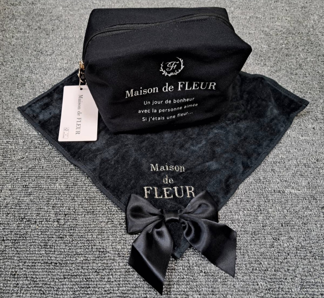 - 即決★新品 定価5440円 メゾンドフルール ポーチ ハンカチ セット 黒 リボン お買い得!