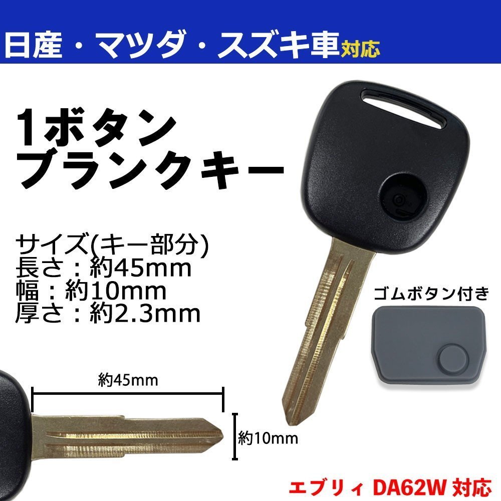 > エブリィ DA62W 対応 スズキ ブランクキー キーレス スペア 合鍵 1ボタン 内溝 交換 鍵補修 かぎ カギ 車 鍵 ゴムボタン 付き