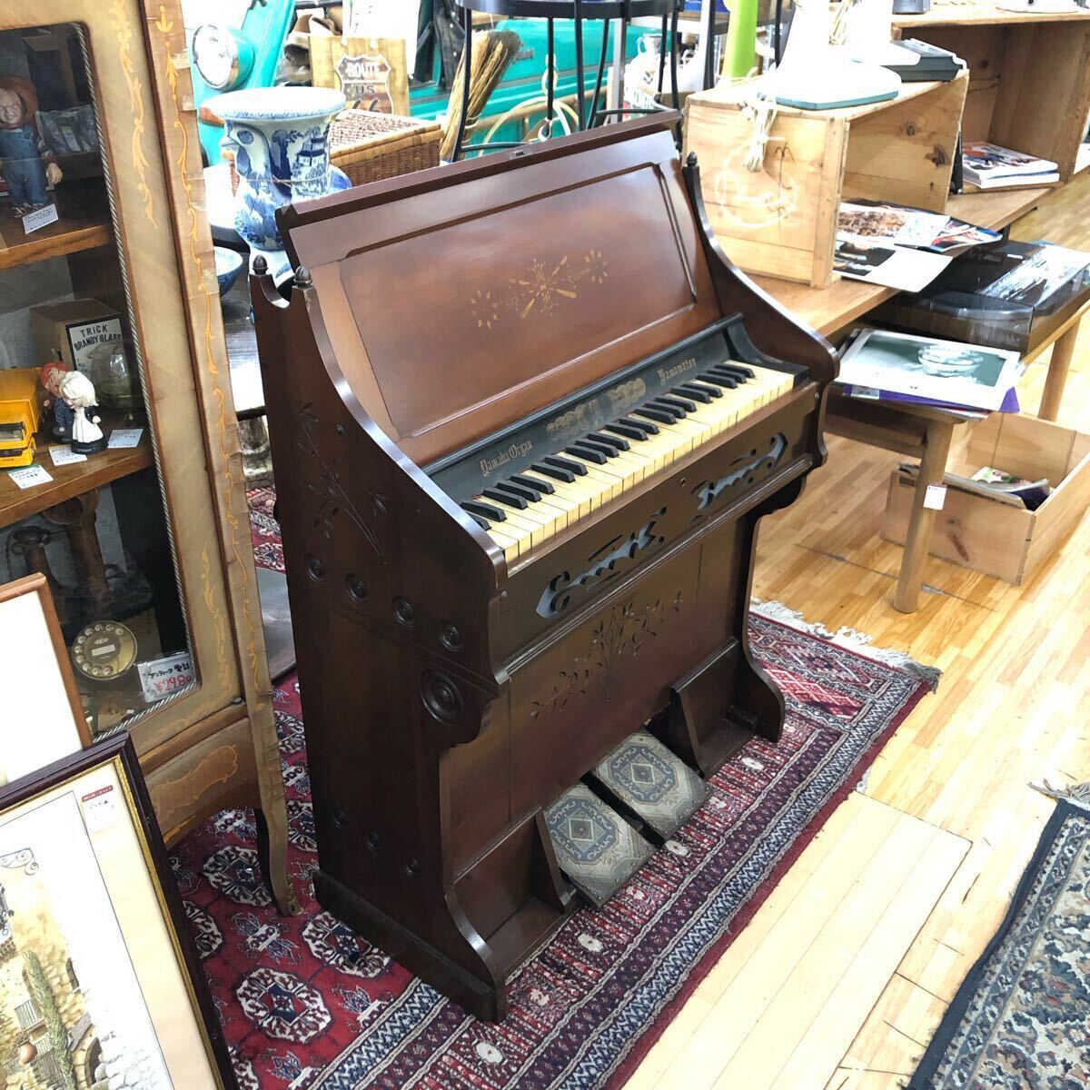 - 直接引き取り アンティーク 足踏み オルガン 現状売り YAMAHA リードオルガン HAMAMATSU レトロ 骨董 楽器 49鍵 レリーフ 装飾 クラシック