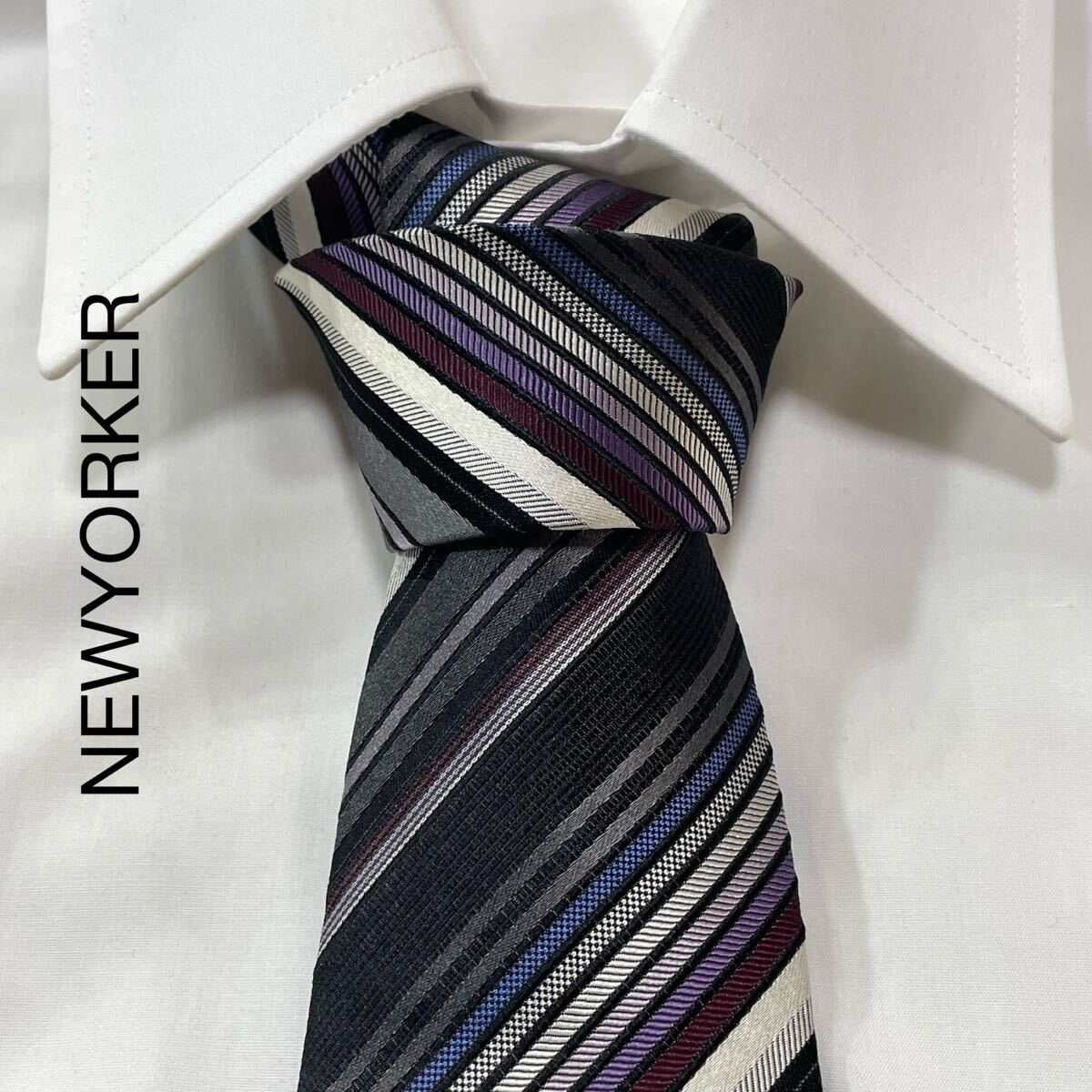 - NEWYORKER ニューヨーカー レジメンタル ストライプ シルク ネクタイ ブラック グレー ホワイト パープル ワイン ブルー TG2138