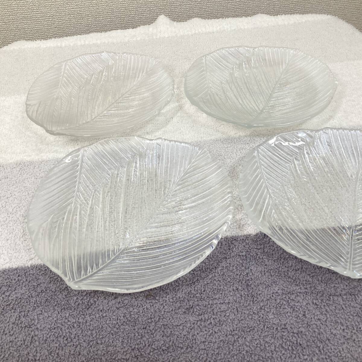 - 【HOYA】中皿 平皿 ガラス皿 ガラス食器 昭和レトロ プレスガラス 葉っぱ ホヤ ホーヤ 和食 洋食 中華 和食器 おばんざい 割烹
