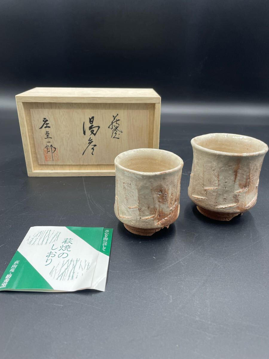 > 萩焼 夫婦湯呑 2客 湯飲み 湯呑み 茶器 煎茶道具 椿秀窯 庄 圭一郎