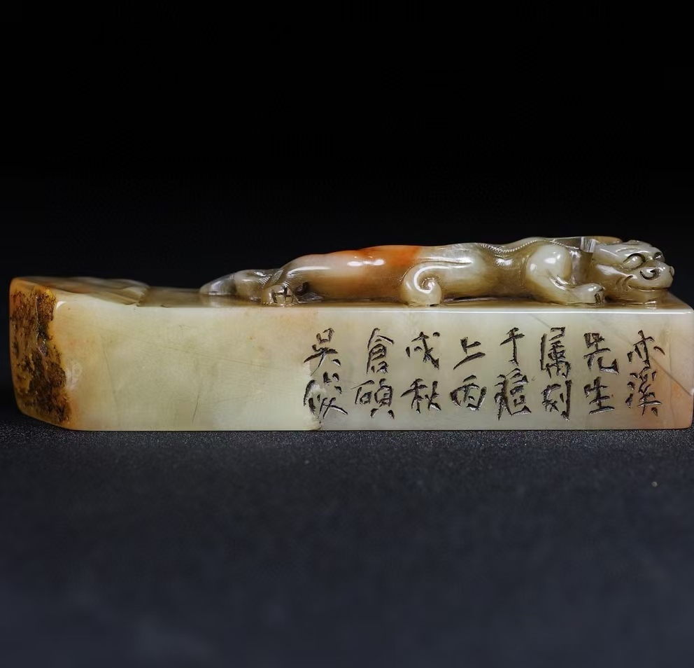- 秘藏 清代 寿山石動物印。『赤虎龍呈祥』 印章 印鑒 古印材 印鑑の方 唐物 古玉彫 天然石 稀少珍品 古美術 古賞物 置物 旧蔵 裝身具6.17