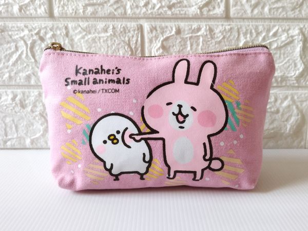 - 値下げ!! 台湾限定!!★即決♪ 正規品!! カナヘイの小動物 ピスケ&うさぎ 舟形 帆布ポーチ ピンク♪