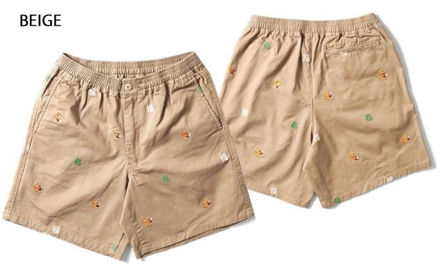 - ツイル総刺繍イージーショーツ◆HOUSTON ベージュ XXLサイズ 10162 ヒューストン ハーフパンツ 虎 ベトジャン風