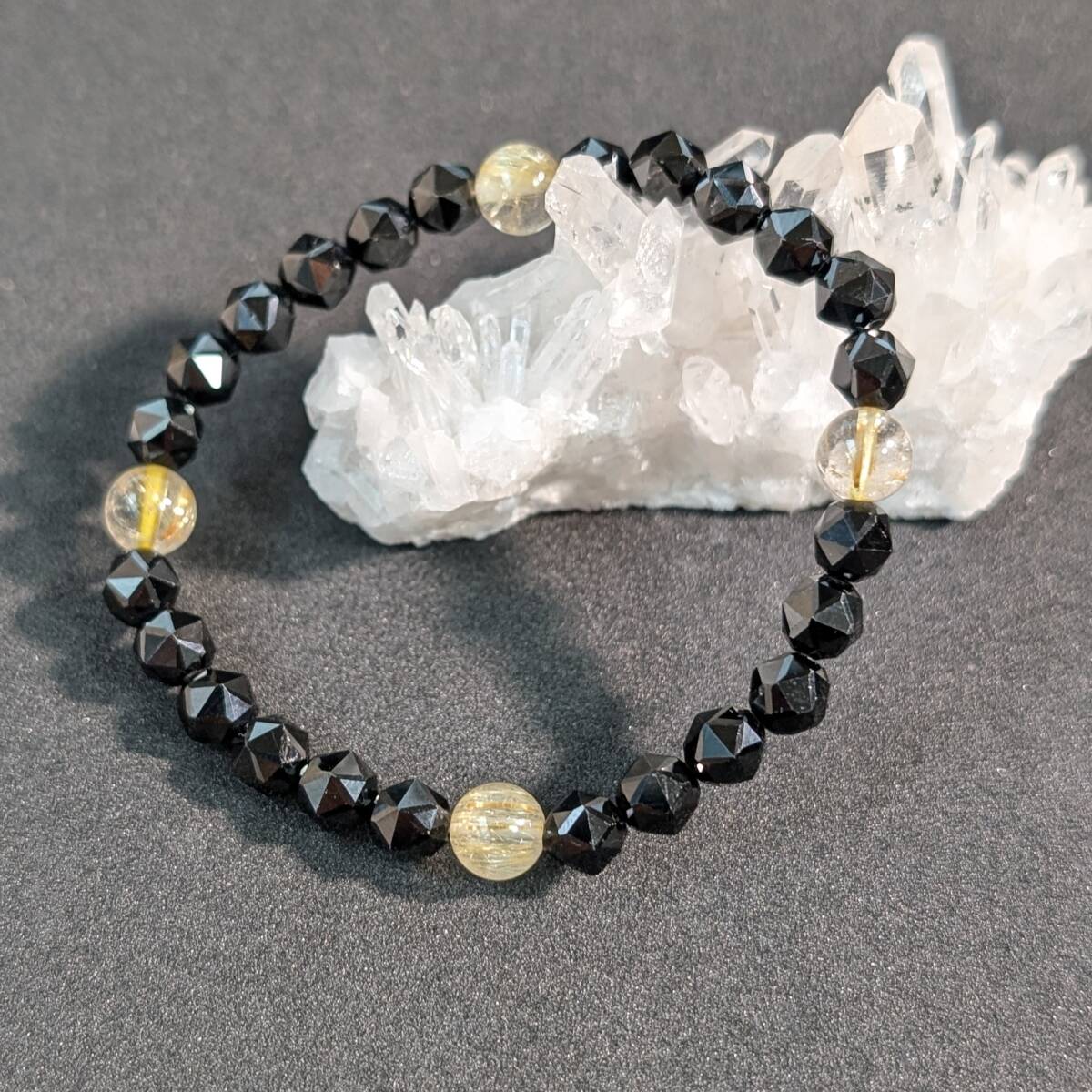 - ゴールドルチル スターカットスピネル ブレスレット 6mm 勝ち運 天然石 手首サイズでオーダー可能 お守り ギフト 贈り物 プレゼント