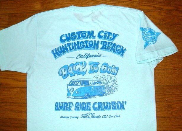 背中に大きくメインモチーフの【カスタムカー(ワーゲンバス)】が、