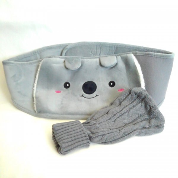 - ☆美品☆湯たんぽ(1L用)カバー2枚組 ニットグレー&ウエストベルト付き コアラ 47 00012