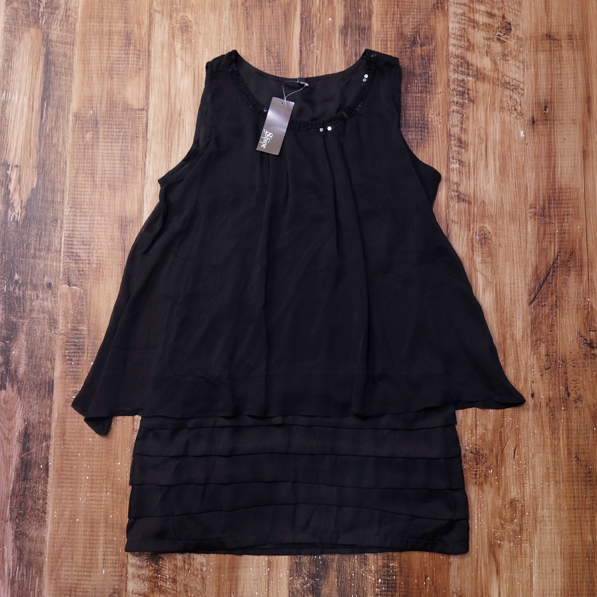 > 未使用 Shine シフォンレイヤードワンピース レディース スパンコール ドレス フォーマル Mサイズ ブラック PO3