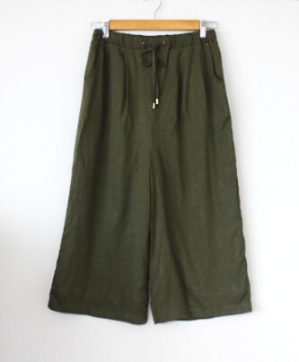> 美品*Alphabet's alphabet*アルファベッツアルファベット*深緑/モスグリーン*ウエストゴム*ポケット*半端丈*ワイドパンツ*F