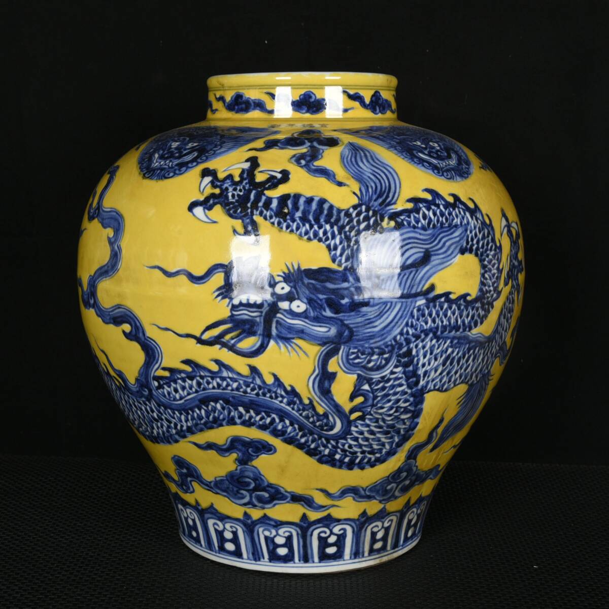 - 『館蔵珍品 明 宣德年製款 古陶瓷品 黄地 青花 云龍紋罐 陶藝』稀少珍蔵品 古賞物 貴重物品 収蔵品 中国古美術 時代物 古董品