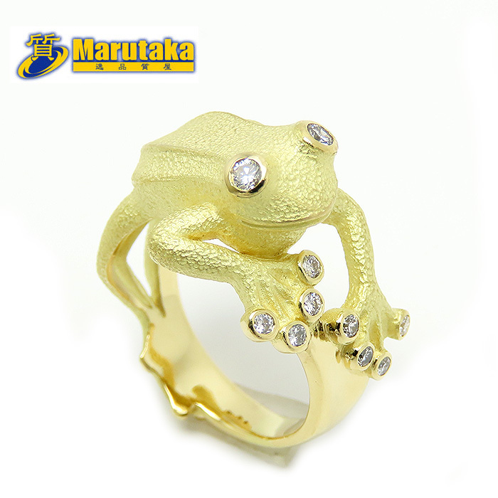 - カエル ダイヤモンド イエローゴールド リング 鑑別書 K18 D0.23ct YG 尼崎 兵庫 逸品質屋 丸高 a22-2-2