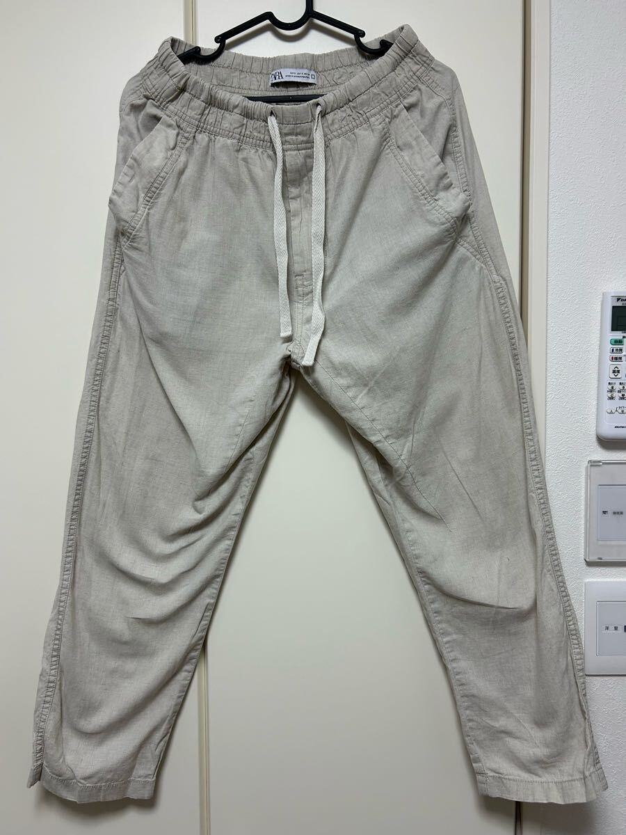 - ZARA ザラ 麻7分丈パンツ ズボン リネン白ベージュ