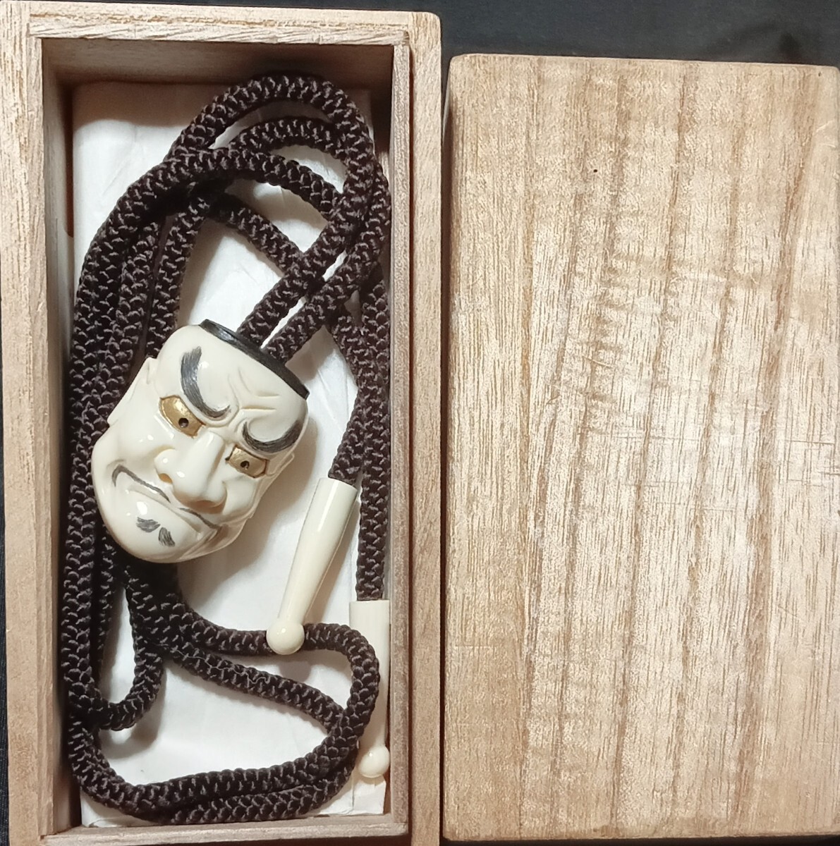 - 青木光行 在銘 「大べし見 (天狗)」 ループタイ 帯留 る現代 根付 作者 共箱有