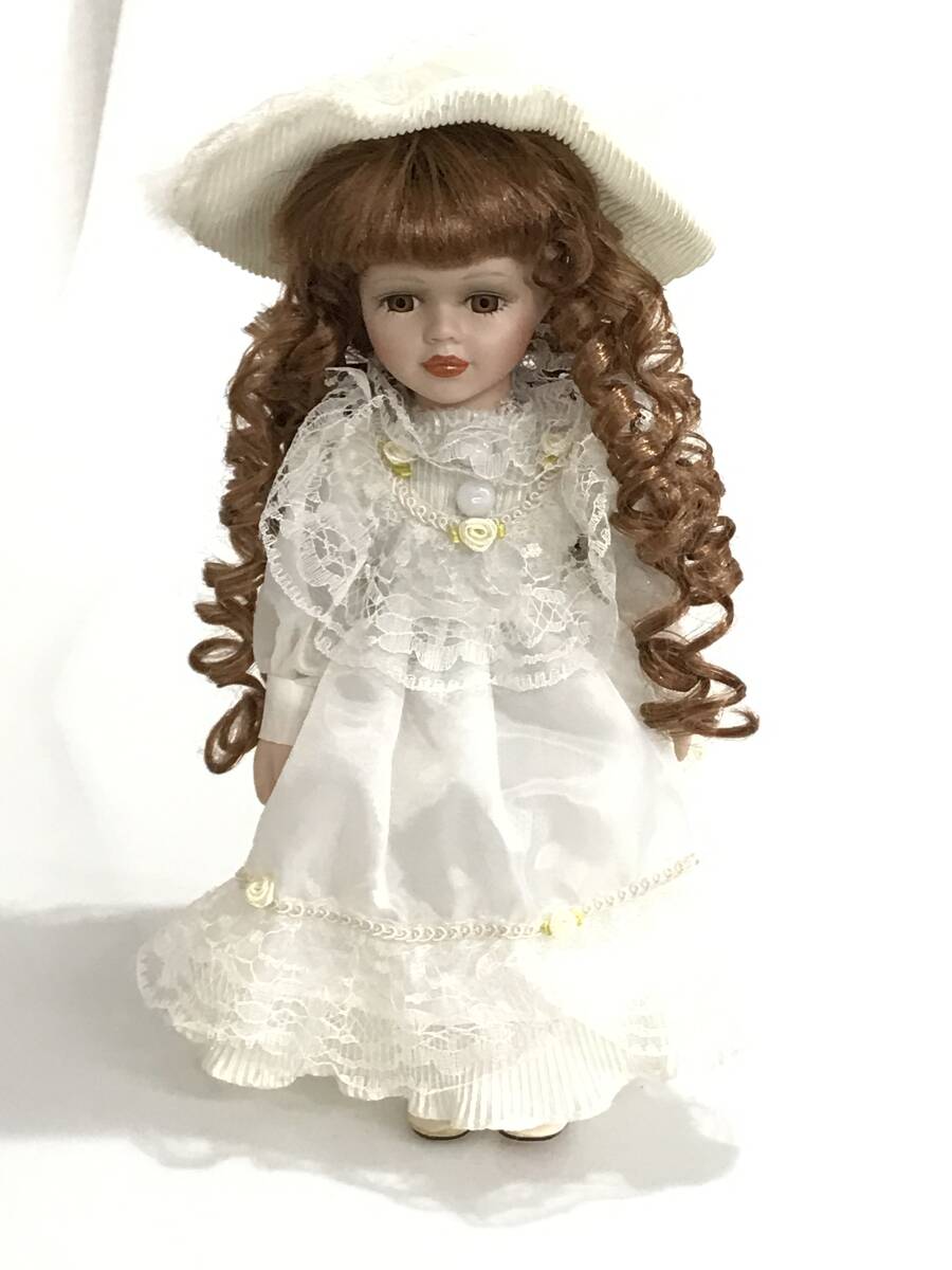 > G8116 Porcelain Doll 約30cm ドール 女の子 金髪ドレス ホワイト 陶器製 ビスクドール 西洋人形 アンティーク