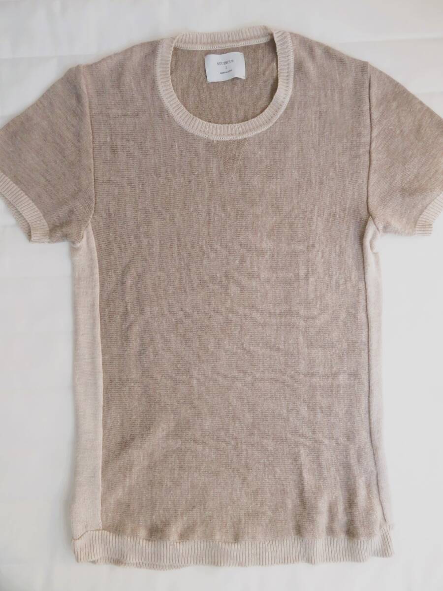 > STUDIOUS ステュディオス 半袖 サマーニット クルーネック リバースウィーブ (レーヨン ナイロン リネン) サイズ2 日本製 JAPAN 送料無料