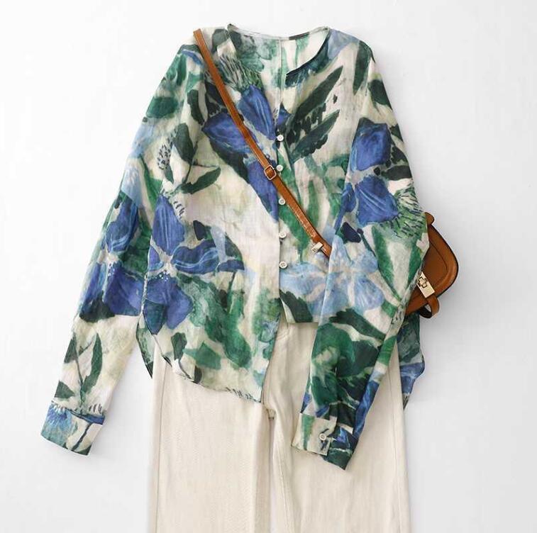 - 上質新品秋 ナチュラル 花柄 プリント シャツ トップス レディース ブラウス 大きいサイズ ゆったり Vネック 着痩せ 長袖 チュニック
