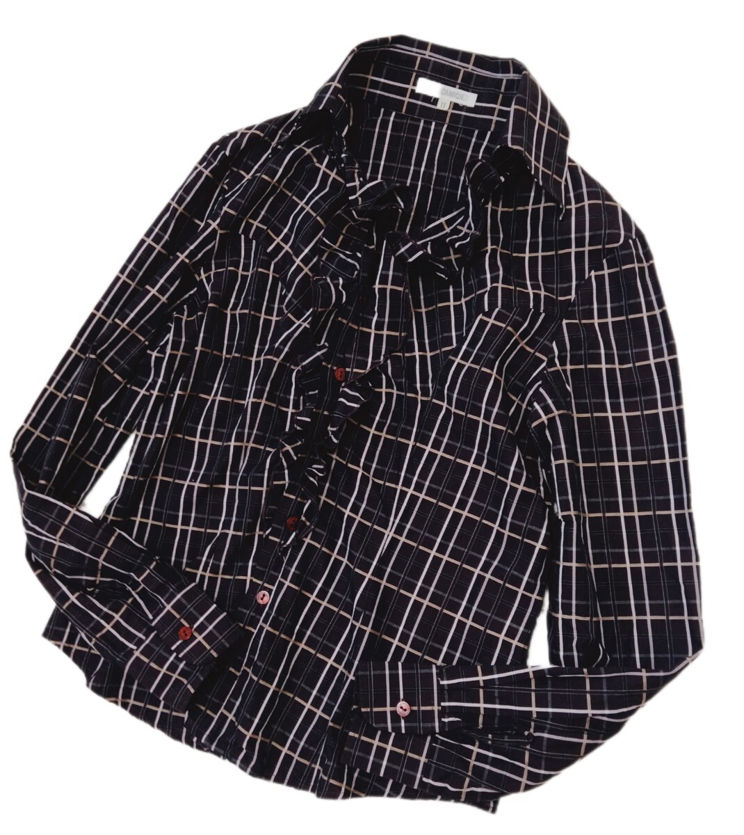 - NARACAMICIE*ナラカミーチェ*長袖ブラウス*サイズⅡ*胸元フリル*チェック柄*バーガンディ*シャツ