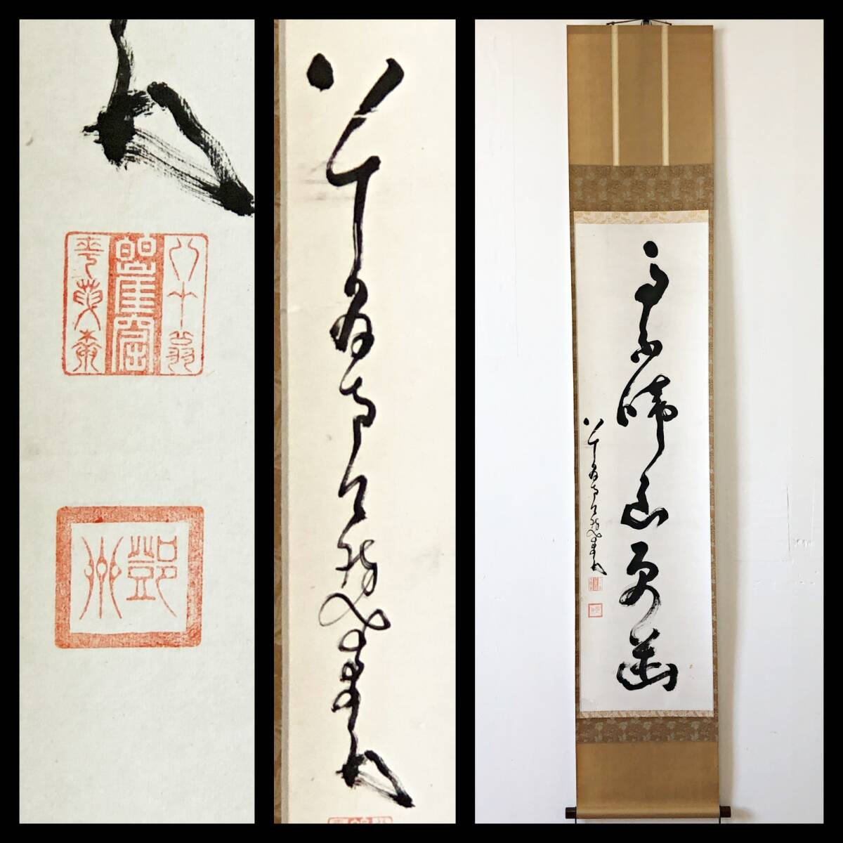 > 【真作】W652【 中原南天棒/鄧州/全忠/白崖窟 臨済宗妙心寺派の僧 五字一行書『鳥啼山更幽』】掛軸/書/茶掛/墨蹟/紙本/再表具