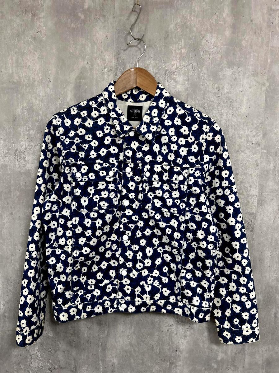 > KATE SPADE SATURDAY ケイト・スペード サタデー 総柄 ジャケット sizeM/白x青 ◆■ レディース