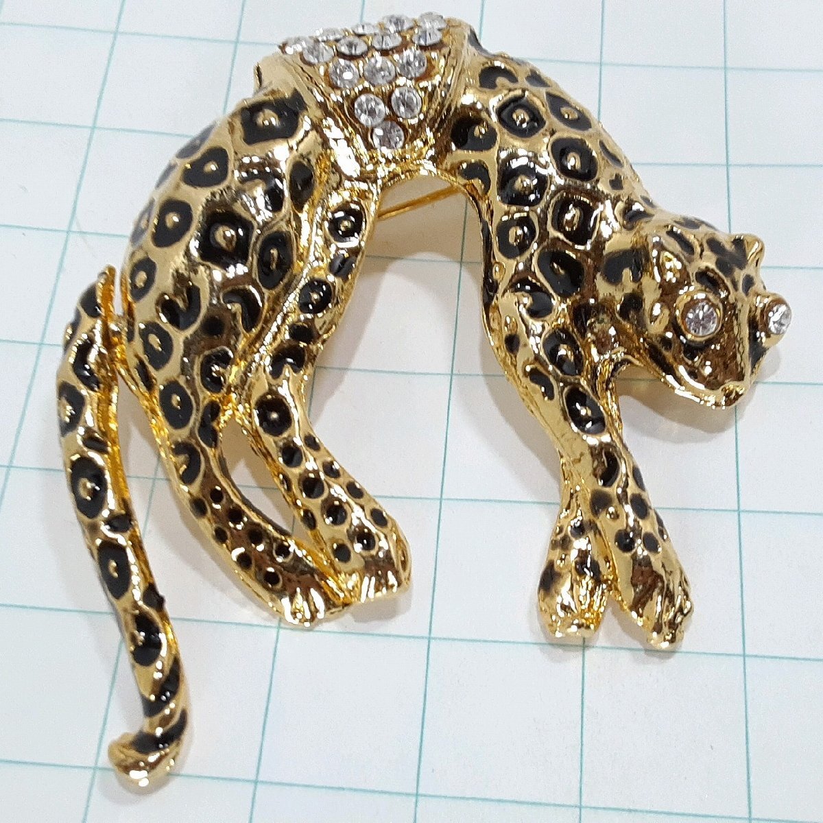 - 送料無料)ビンテージ☆ヒョウ☆アンティーク ブローチ A30427