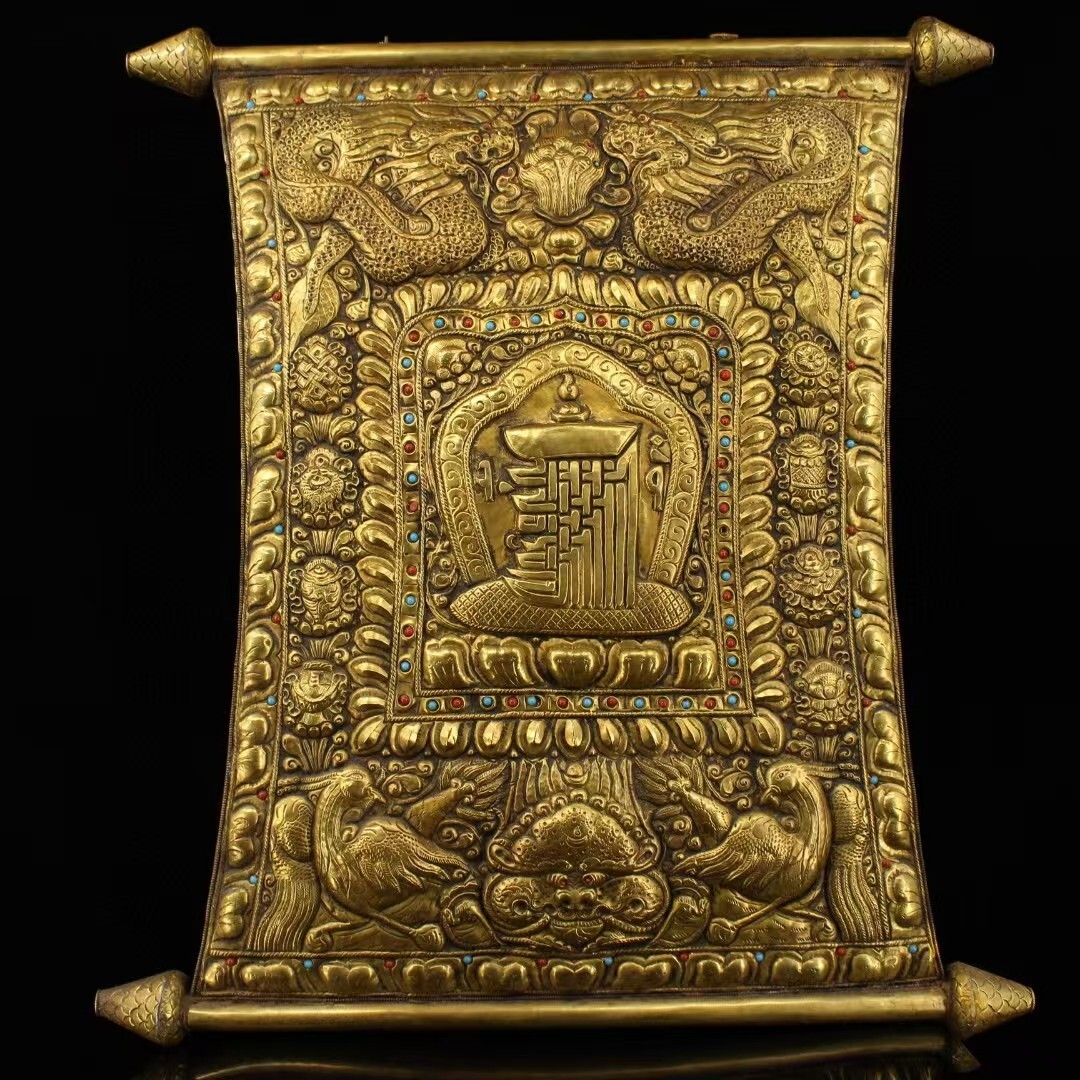 - 清代 唐 旧蔵 チベット古寺 ネパール、古銅モザイクの宝石を受け取った金壇城唐 銅製 銅琉金 唐物 收蔵品 時代物 古置物 供養品 仏教