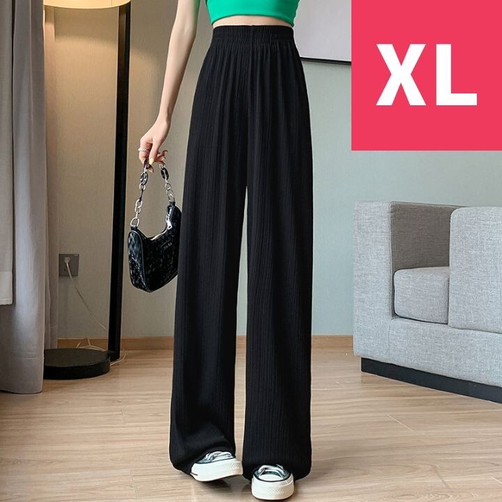 - ワイドパンツ ひんやり 接触冷感 XL おしゃれ カジュアル ブラック 夏
