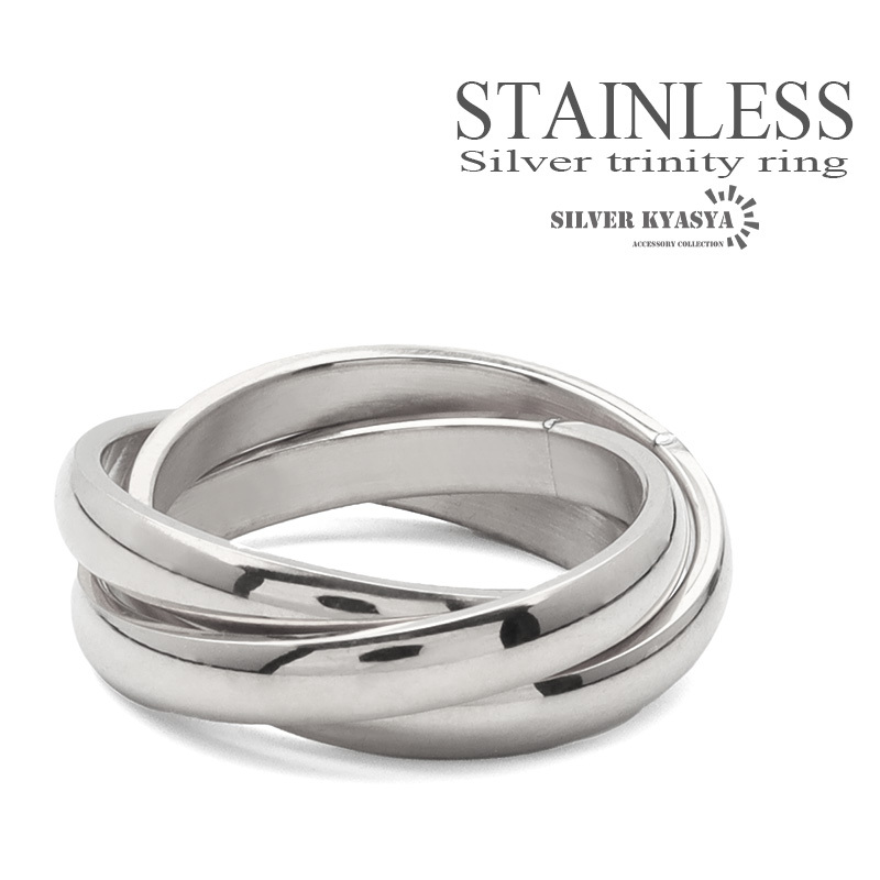 - (23号) ステンレス 3連リング トリニティリング ツイスト ねじれ メンズ 指輪 シルバー 金属アレルギー対応 男女兼用