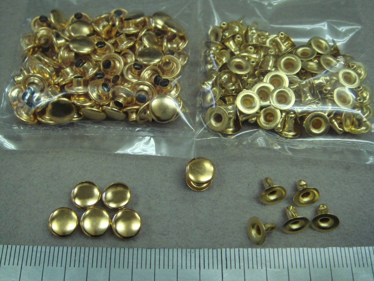 - カシメ 片面中カシメ 5.5ミリ足 真鍮製・本金鍍金 100セット