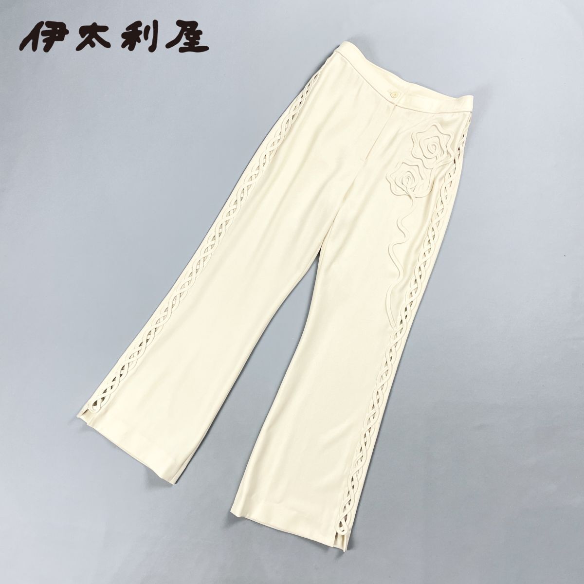 - 美品 伊太利屋 イタリヤ サイドテープデザインワイドパンツ ボトムス レディース ライトベージュ サイズ9*CD1164
