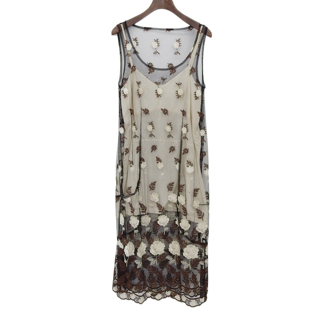 - r7h042505◆COMME des GARCONS コムデギャルソン 90s AD1995 花柄刺繍 チュール素材 レイヤードワンピース ブラック レディース S
