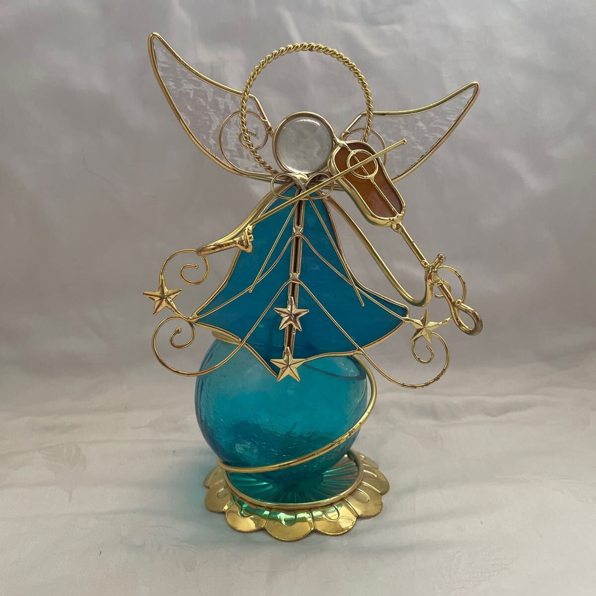 - ◎天使のフィギュリン 置物 装飾用 ブルー プラ 白 ガラス 象徴 光輪 Xー30 インテリア