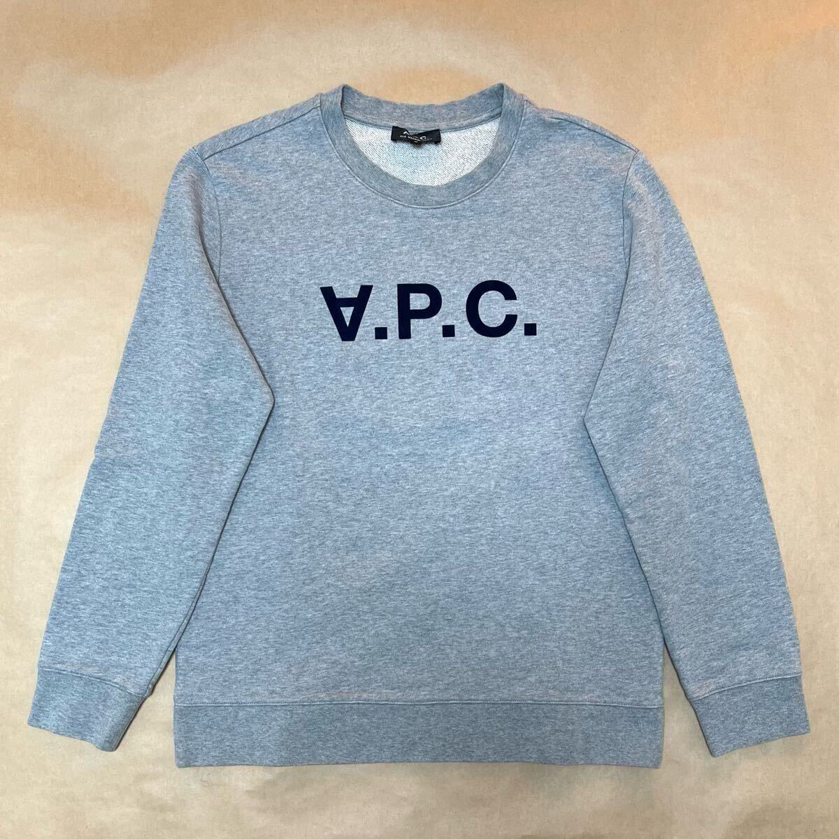 > 極美品 A.P.C. VPC スウェットシャツ 杢グレー M フロッキー ロゴ クルーネック 長袖 トレーナー APC アーペーセー @b211