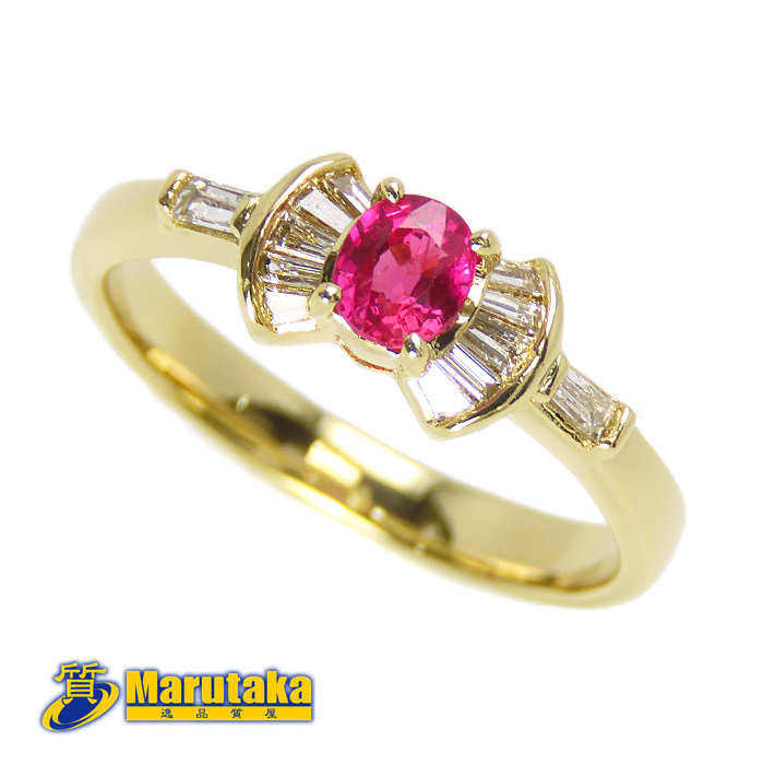 > 【K18】リボン リング ルビー ダイヤモンド 11号 指輪 ソーティング付 キティちゃんのリボンのようなデザイン 中古 24k4-18