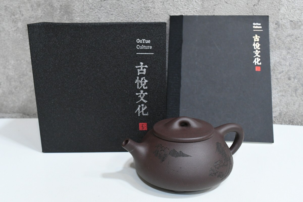 - trok2012 中国美術 紫砂 朱泥 急須 茶器 刻印あり 物載徳厚 共箱 煎茶道具 茶道具 冊子付き 伝統工芸品 古悦文化 食器 骨董 陶器 希少
