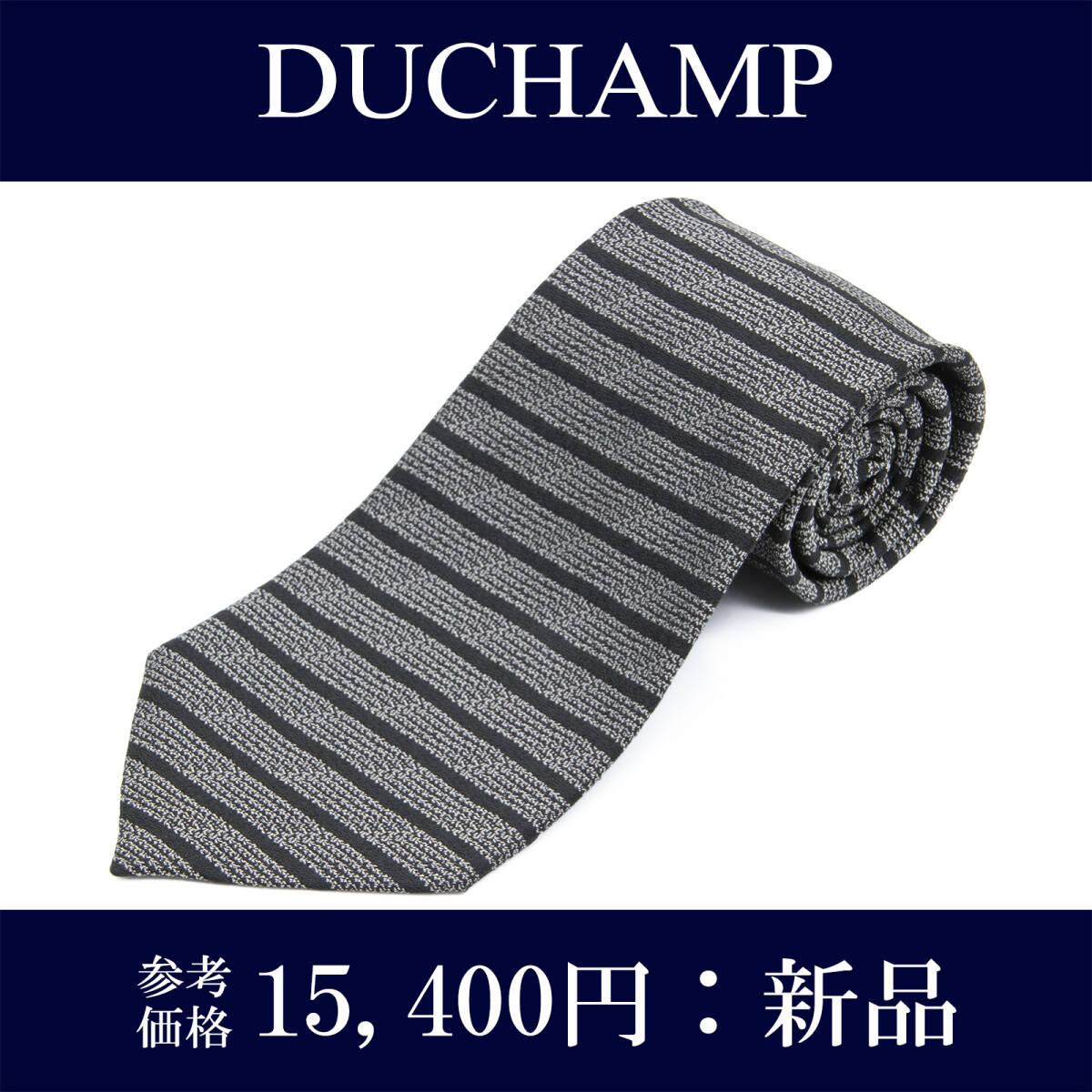 - 送料無料 デュシャン ネクタイ ジャガード 新品 シルク グレー 黒 ストライプ ボーダー モノトーン シンプル ブランド イングランド製 N929