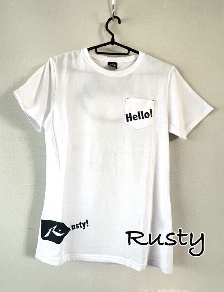 - Rusty ラスティ ニコちゃん スマイル バック刺繍 半袖Tシャツ レディース L