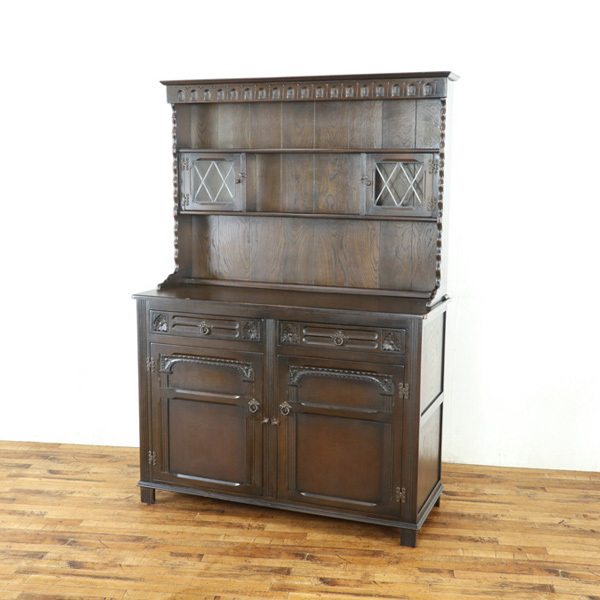 - 横幅広めタイプ カップボード 収納兼ディスプレイ棚 食器棚 飾り棚 デザインもおしゃれ キャビネット イギリス 80058