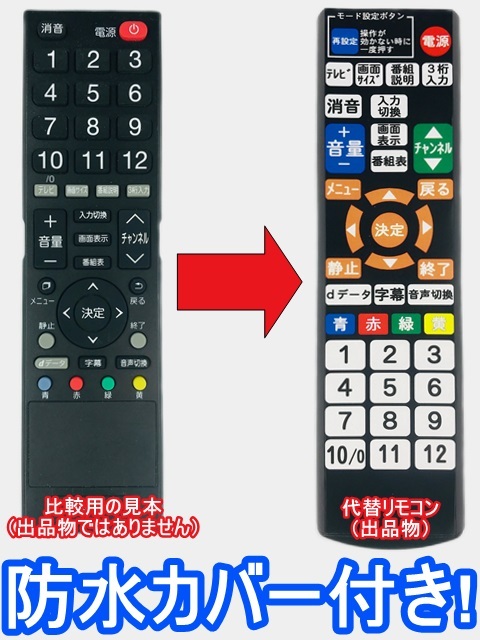 - 【代替リモコン138】防水カバー付 ドウシシャ RT-001 互換 送料無料 (DTC19-11B DTC32-11B用) SANSUI等