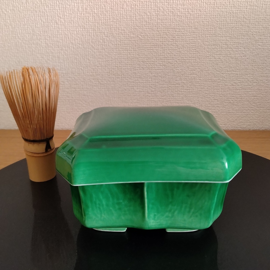 - 有田焼 福泉窯 長角蓋物 小箱 重箱 緑