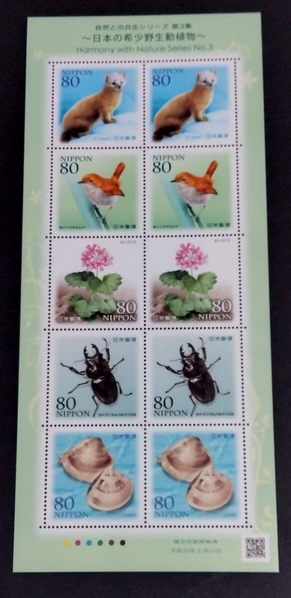 - 2013年・記念切手-自然との共生シリーズ第3集シート(解説書付)
