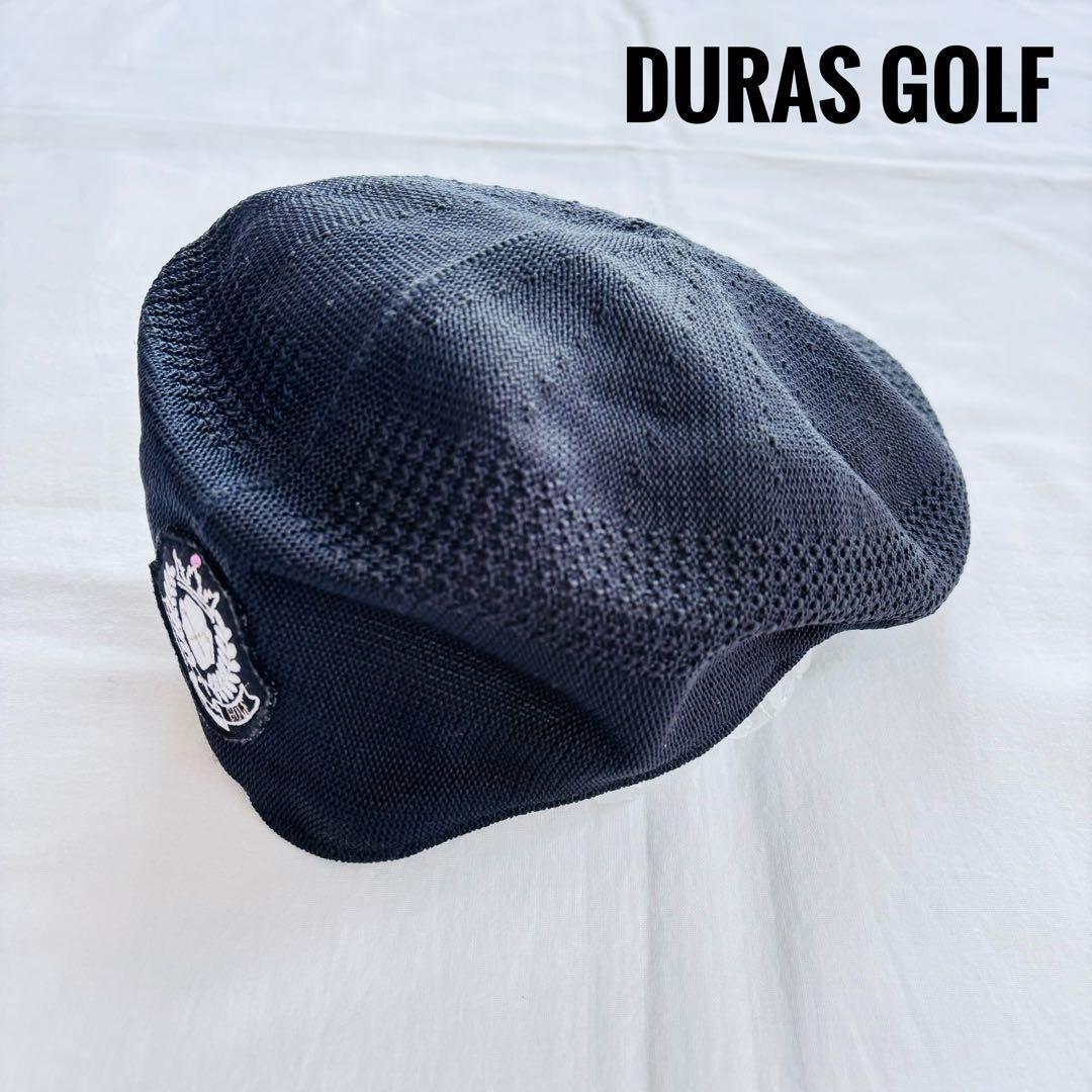 - DURAS デュラス 男女兼用 ゴルフ ブラック メッシュ ハンチング帽 刺繍ロゴ
