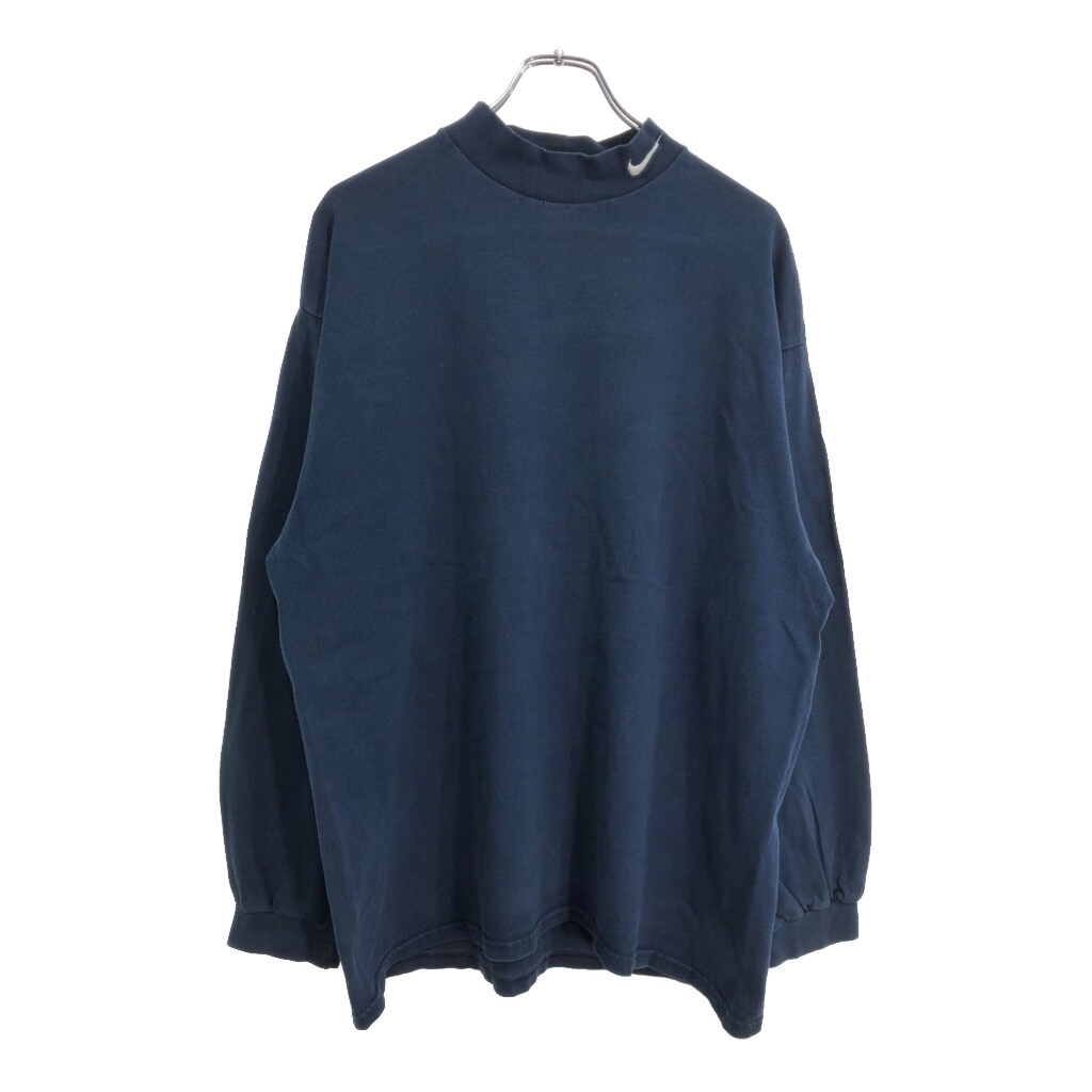 > 90年代 USA製 NIKE ナイキ モックネック 長袖Tシャツ スポーツ ネイビー(メンズ L)中古 古着 U5660