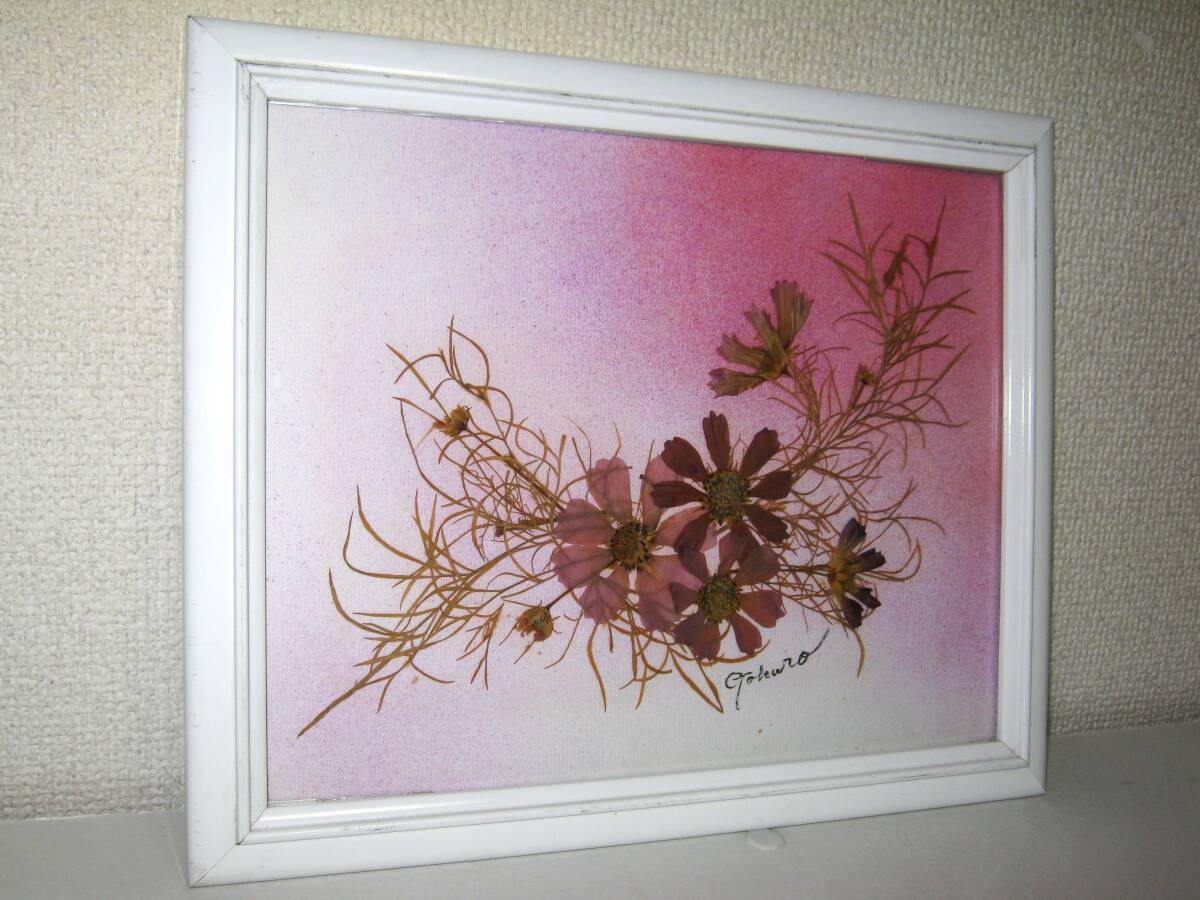 > 【フラワーアート ハンドメイド】押し花 額縁 ホワイトフレーム セピア色 ピンク 淡い 手作り レトロ 額装 壁掛け おしゃれ インテリア