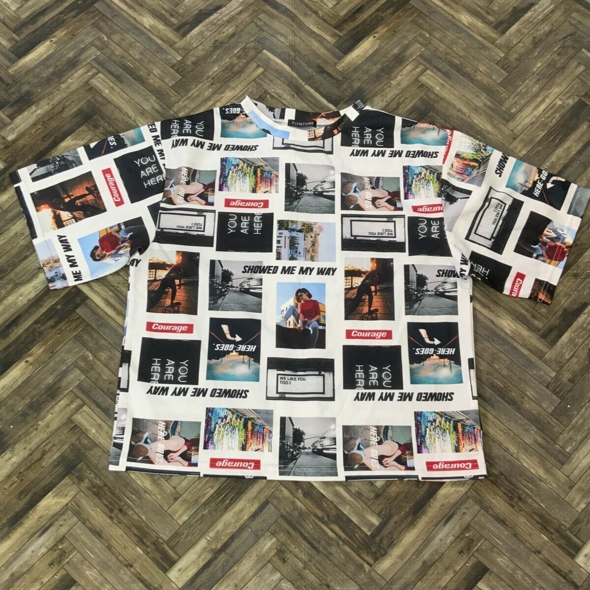 > QS1553 PLYMTONE 半袖Tシャツ 派手柄 プリント ホワイト 総柄 レディース4L