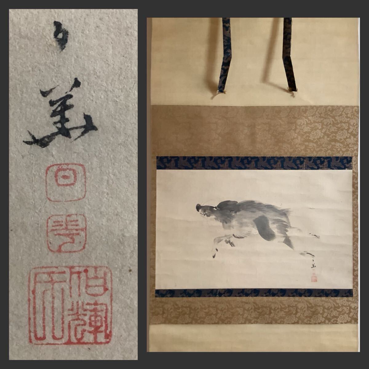 - 【模写】掛軸Jun7106BL[田中日華 猪図]紙本 書いたもの 木箱/日本画 水墨画 伯煇 岡本豊彦高弟 古書 京都 四条派