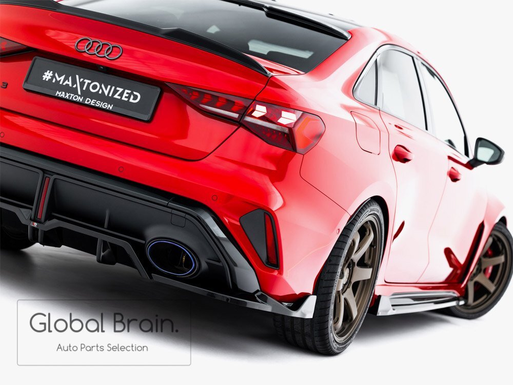 > アウディ RS3 8Y 後期 セダン リア ディフューザー V2/ リア アンダー スプリッター スポイラー バンパー エプロン トリム ガード
