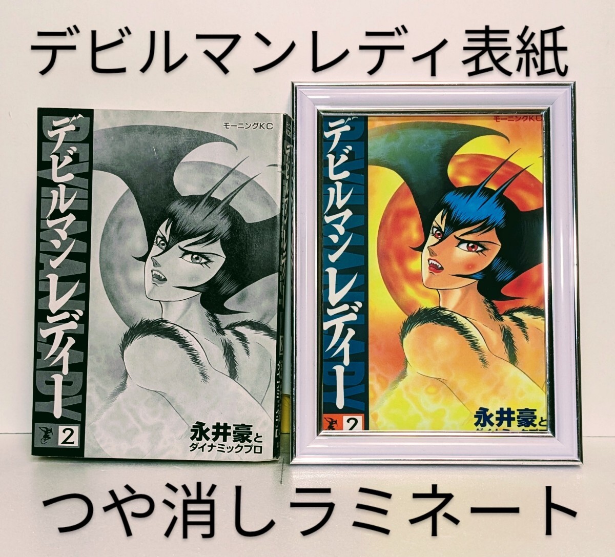 - 永井豪(デビルマンレディー② 表紙絵と本巻をセット)表紙絵はつや消しラミネート加工 新品2L額装
