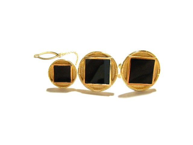 - ★カフス タイタック セット オニキス ブラック 黒 ゴールドカラー 【CF10】