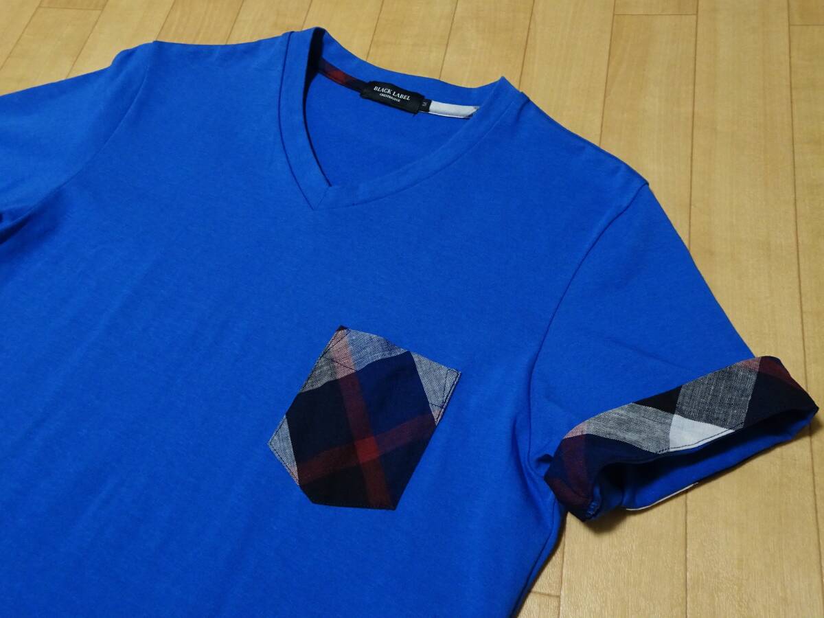 > 【必見】★ブラックレーベル/クレストブリッジ/半袖/Vネック/麻混/胸ポケット/Tシャツ/М★【TP-006】